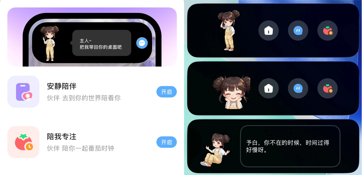 当我工作时,Ta 可以进入我的世界静静等待,会产生心情变化,想我了还会主动给我发消息。