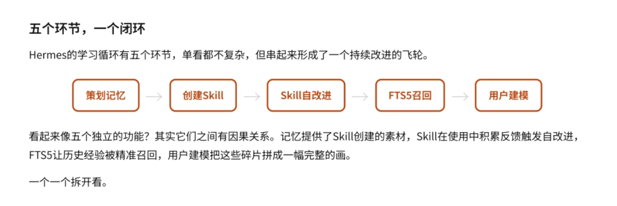 特性:区别于 OpenClaw 的人工维护,Hermes Skill 会从经验中自动进化