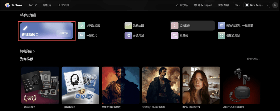 我们打开 TapNow 官网。