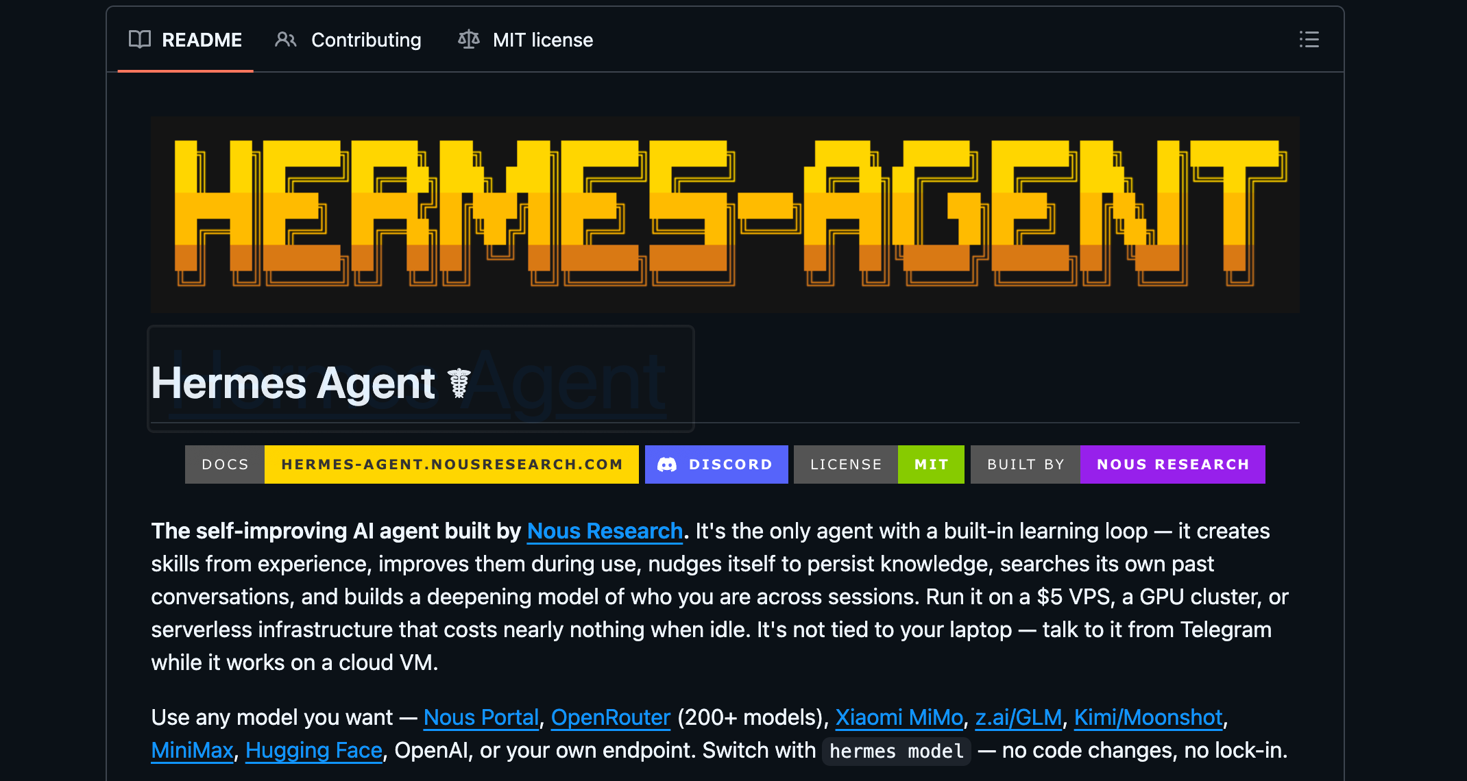 GitHub地址:https://github.com/NousResearch/hermes-agent