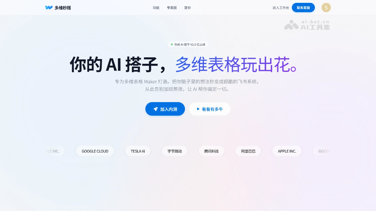 产品形态:专为飞书多维表格打造的AI搭建工具,由前飞书大客户售前团队创立。