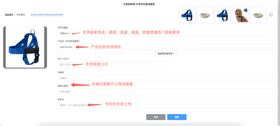产品名 / 关键词 / 申请人 / 专利号全字段自定义