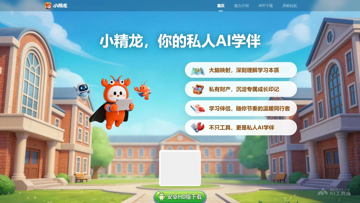 小精龙是学而思推出的面向学生的AI智能学伴(Agent),基于OpenClaw架构打造。工具通过”大脑映射”持续理解学生的知识漏洞与思维习惯,将学习轨迹沉淀为”私有财产”(越用越懂学生),用”学习伴侣”身份提供个性化辅导与情感陪伴。小精龙能针对不同年龄、性格调整互动方式,主动管理学习进度、识别情绪状态,定位是7×24小时陪伴学生成长的专属AI Companion。