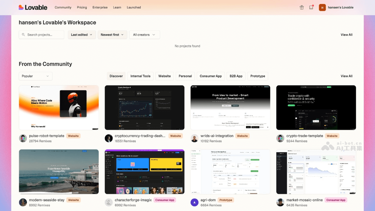 - 创建新项目:输入初始提示,Lovable 自动生成项目。