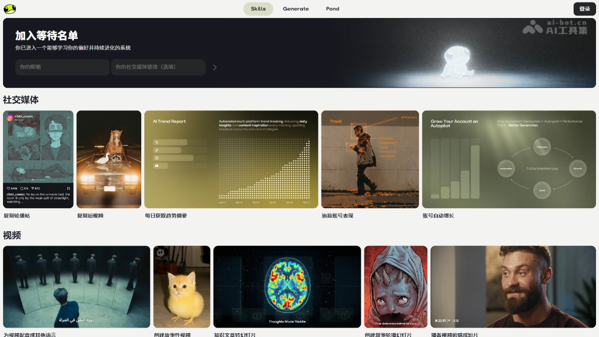 - 独家功能:Pond(池塘)- AI 素材库+自我训练,越用越懂用户风格