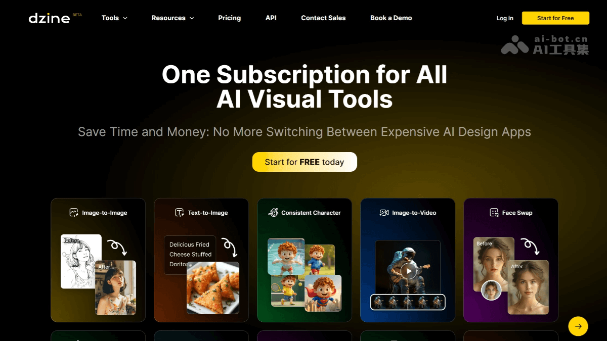 - AI艺术生成器:通过文本到图像的AI工具,Dzine能根据用户提供的文本描述生成艺术作品,将抽象概念转化为视觉现实。