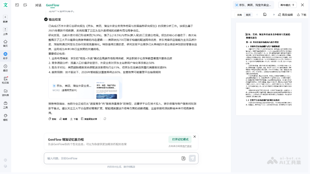 - 办公自动化:用户能通过简单指令让GenFlow完成Excel复杂计算、Word排版和PPT美化等操作,轻松实现办公流程的高效自动化。