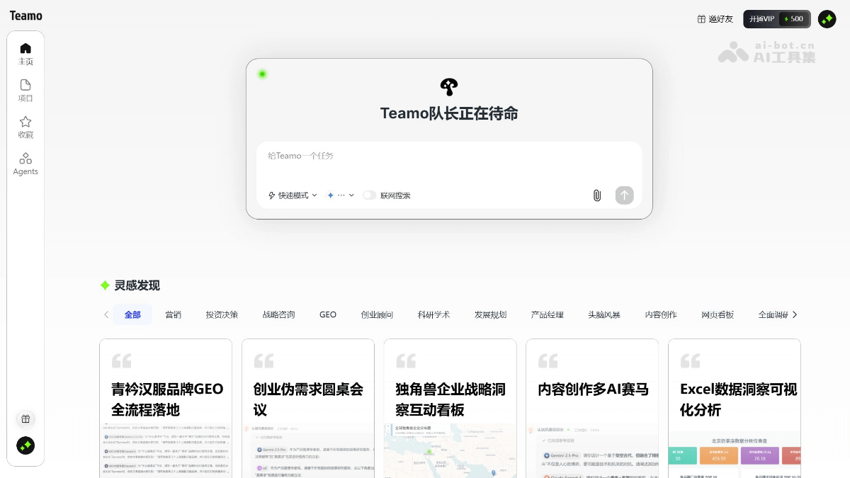 - 多智能体协作:模拟真实团队架构,由“队长”(CEO Agent)统一指挥,下设搜索组、咨询组、写作组、设计组等专业小组,各小组成员(不同AI模型)分工协作,协同完成复杂任务。