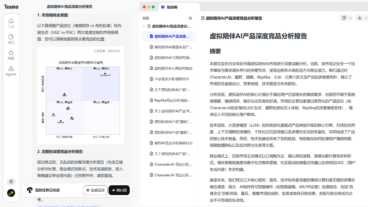 深度研究:帮助用户快速调研特定主题,整合信息生成高质量的研究报告,适用学术研究、市场调研等场景。
