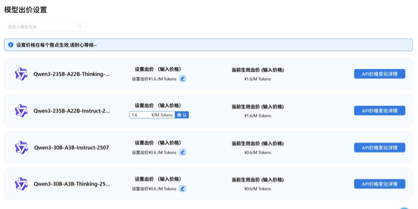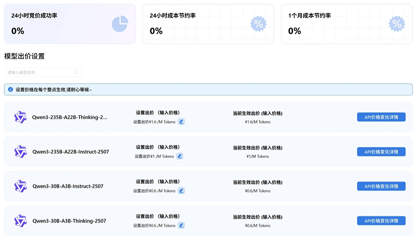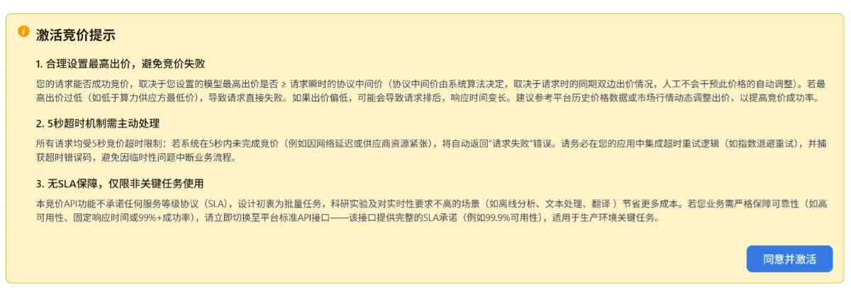 - 小贴士:首次使用建议设置略高于市场均价的出价(约10-15%),确保服务稳定性,随后可根据使用体验逐步优化!高用量但是低实时性需求可以错峰到价格低谷进行调度。