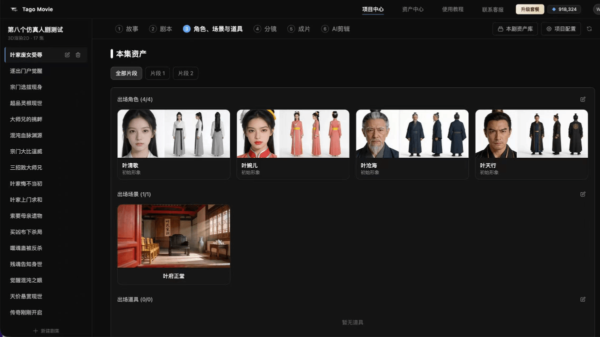 创建资产库:设定主角形象与常驻场景,建立本剧专属视觉资产。