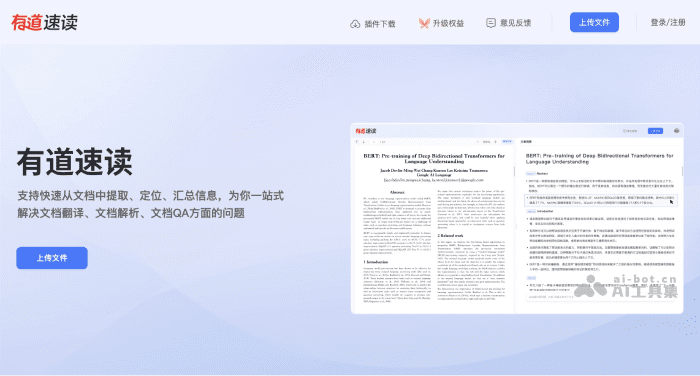 - 访问有道速读的官网(read.youdao.com),点击上传文件