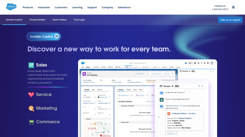 - Einstein for Marketing:帮助营销团队通过消费者洞察和预测分析更深入地了解受众,并提供关于客户接触的最佳时机和渠道的智能建议。