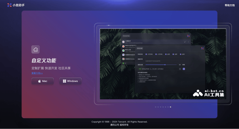 小微助手是微信推出的一款桌面端AI效率工具,通过对话形式实现与PC端的交互,大幅提升桌面工作效率。该AI助手内置了多种实用工具,如Json魔方、Base64工具、密码工具等,还具备剪切板管理、文件和应用搜索、深入信息检索等功能。用户可以通过自然语言与小微助手进行交互,快速找到所需文件或启动应用程序。此外,小微助手还支持多种AI模型调用,提供了灵活的搜索功能和共享空间“圈子”,方便用户共享数据和服务。