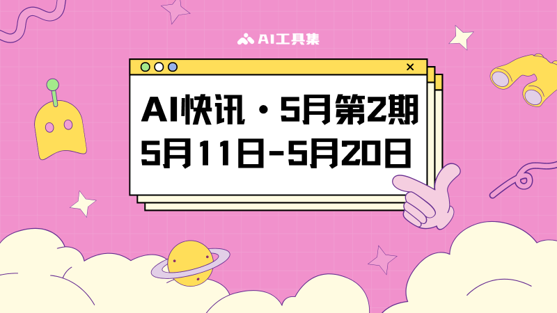 AI工具集采用每月3期的版面集合,每日更新AI行业的最新快讯,本期为5月第2期(5月11日到5月20日)的AI行业新闻集合。