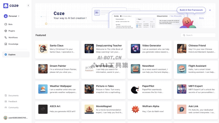 Coze是字节跳动推出的零代码 AI 应用开发平台,可以理解为字节跳动版的GPTs。无论用户是否有编程经验,都可以通过该平台快速创建各种类型的聊天机器人、智能体、AI应用和插件,并将其部署在社交平台和即时聊天应用程序中,如Discord、WhatsApp、Twitter、飞书、微信公众号、豆包等。目前Coze平台上拥有海量AI智能体,图文、音视频生成等各个领域全覆盖,完全免费使用。
