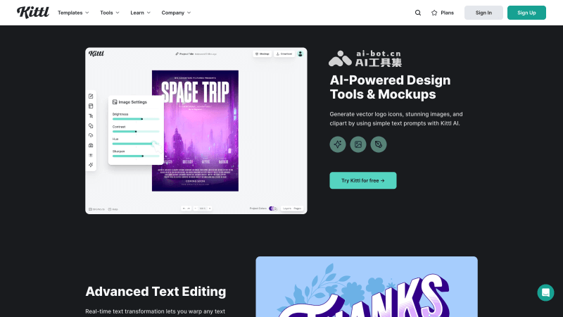 - 访问Kittl的官网(kittl.com),点击Try Kittl for free开始免费使用