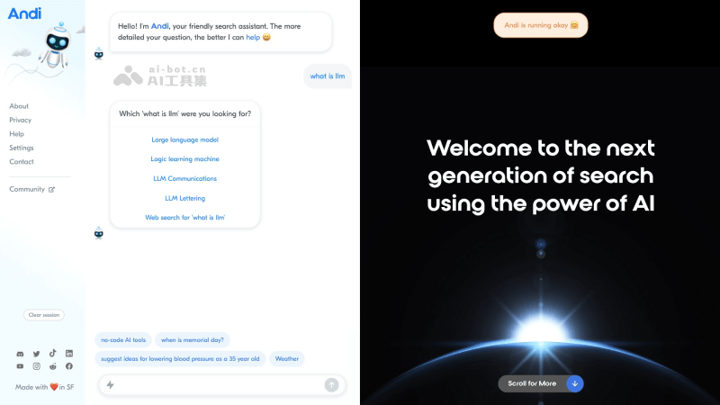 - 隐私至上:Andi AI 尊重并保护用户隐私,不会追踪用户的搜索行为,提供一个安全、私密的搜索体验。