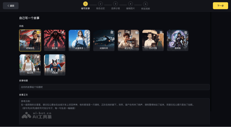 - 编写故事:在视频创作页,你需要编写自己的故事,如小说推文、原创故事等,确保故事内容适合转化为视频。